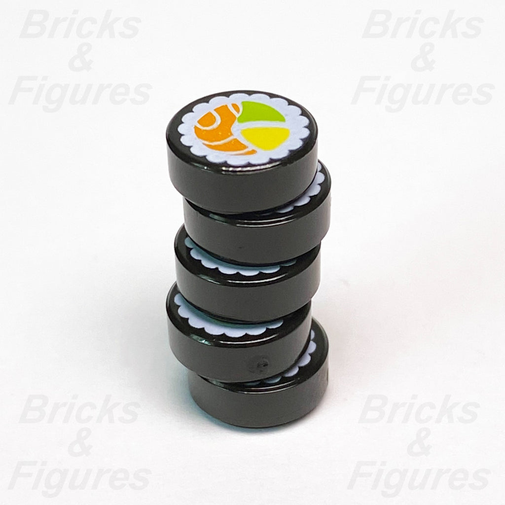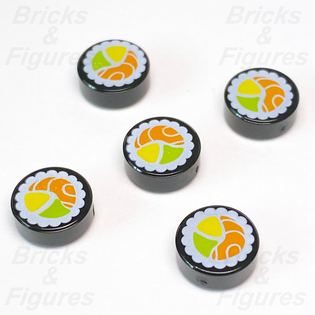 LEGO Sushi Salmon Maki Roll Pattern Tile Round 1 x 1 Part Food 98138pb038 x 5